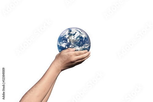 Canvas Print : Earth, globe in hand on transparent background - png format - elements of this image furnished by nas