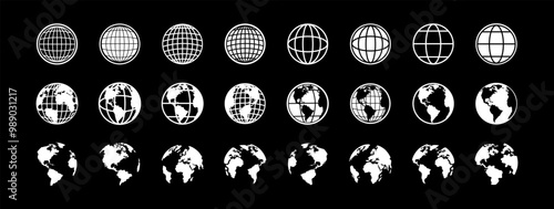 Canvas Print : Earth globe - globe vector icons - world maps black - planet earth in different shapes - big set of eart