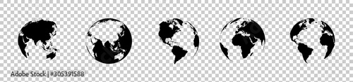 Canvas Print : Earth globes, isolated on transparent background - five earth globes vector icons in a row and modern