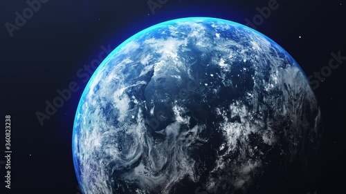Canvas Print : Earth in space view with shining sunrise in universe and galaxy background zoom in