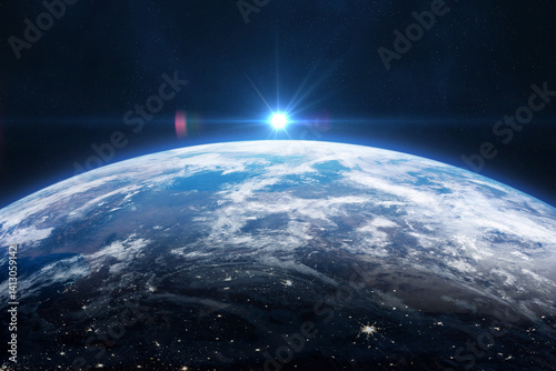 Canvas Prints earth in the outer space. blue earth planet in outer space. sunrise over earth in space.
