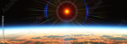Canvas Prints earth sunrise from space over cloudy ocean. 3d rendering