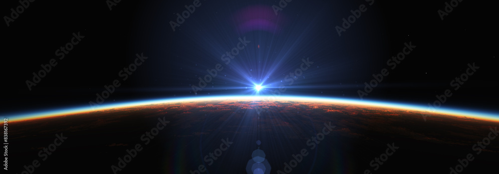 Canvas Prints earth sunrise from space over cloudy ocean. 3d rendering
