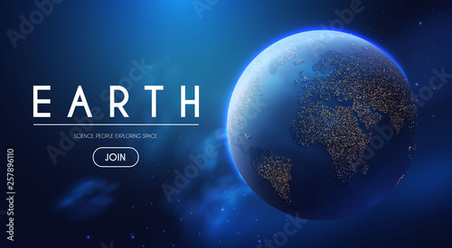 Canvas Prints eath planet in space with lights. realistic universe. cosmos background.