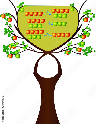 Canvas Prints educational games for children, action relationship of addition and subtraction, examples with apple - Canvas Prints Canvas Prints educational games for children, action relationship of addition and subtraction, examples with apple - Canvas Prints
