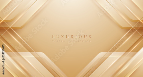 The watermark will not be included on Canvas Print.: Elegant cream shade background with line golden elements - luxury background with 3d style -
