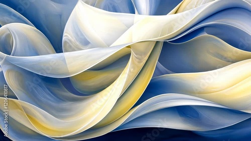 The watermark will not be included on Canvas Print.: Elegant fabric waves in shades of blue and yellow create a serene abstract composition