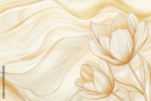 The watermark will not be included on Canvas Print.: Elegant floral design with soft waves in warm tones and lines