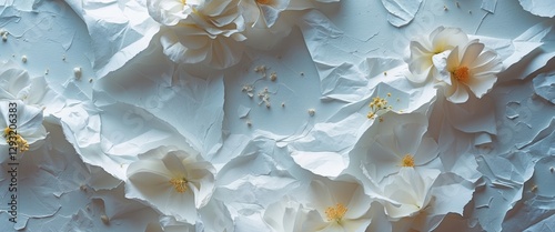 The watermark will not be included on Canvas Print.: Elegant white paper texture with delicate flowers for background and design use