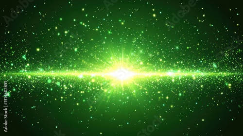 The watermark will not be included on Canvas Print.: Emerald radiance a captivating display of vibrant green light and sparkling stars in a cosmic explos