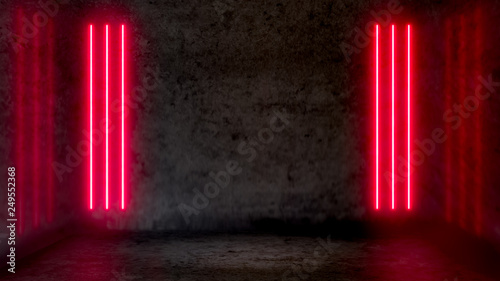 Canvas Prints empty dark abstract room with red fluorescent neon lights. stage, scene and night club party concept