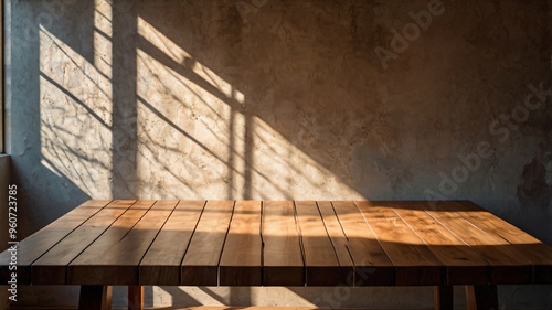 Canvas Prints empty dark wooden table with abstract light from leaf shadow on the wall - Canvas Prints Canvas Prints empty dark wooden table with abstract light from leaf shadow on the wall - Canvas Prints