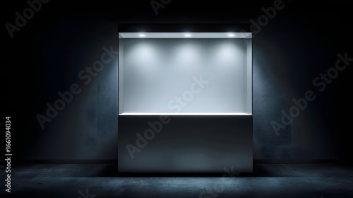 The watermark will not be included on Canvas Print.: Empty modern product display with dramatic lighting