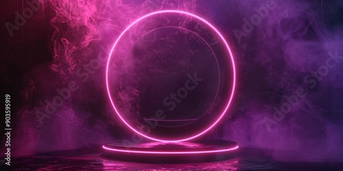 Canvas Print : Enchanting futuristic gateway enveloped in mist, with a circular illuminated teleportation device an