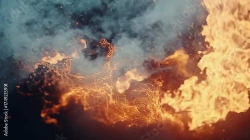 The watermark will not be included on Canvas Print.: Energetic smoke and fire particles creating abstract chaos
