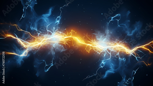 The watermark will not be included on Canvas Print.: Energy lightning collision powerful illustration explosion background