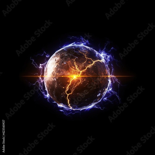 The watermark will not be included on Canvas Print.: Energy of fractal - electric ball with strikes lightning - generative ai