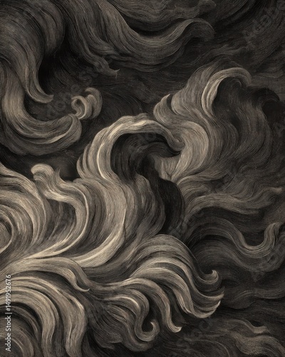 The watermark will not be included on Canvas Print.: Engraved swirls and waves in monochrome art style close up abstract pattern background texture illus