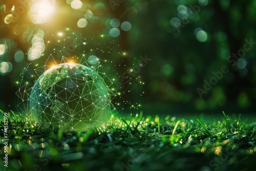 The watermark will not be included on Canvas Print.: Environment concept - a green globe with connected dots -