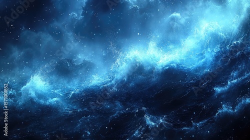The watermark will not be included on Canvas Print.: Ethereal cosmic swirls dance in celestial blues, creating a mesmerizing scene of wonder