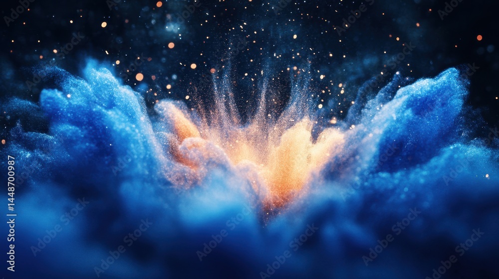 The watermark will not be included on Canvas Print.: Ethereal explosion of vibrant colors blending in a cosmic dance of light and shadow creating a mesme
