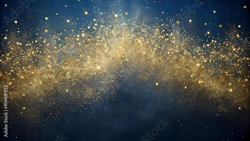 The watermark will not be included on Canvas Print.: Ethereal tapestry of golden dust on midnight blue canvas generative ai