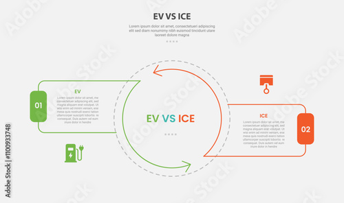 The watermark will not be included on Canvas Print.: Ev vs ice technology infographic outline style with 2 point comparison template with big circle cent