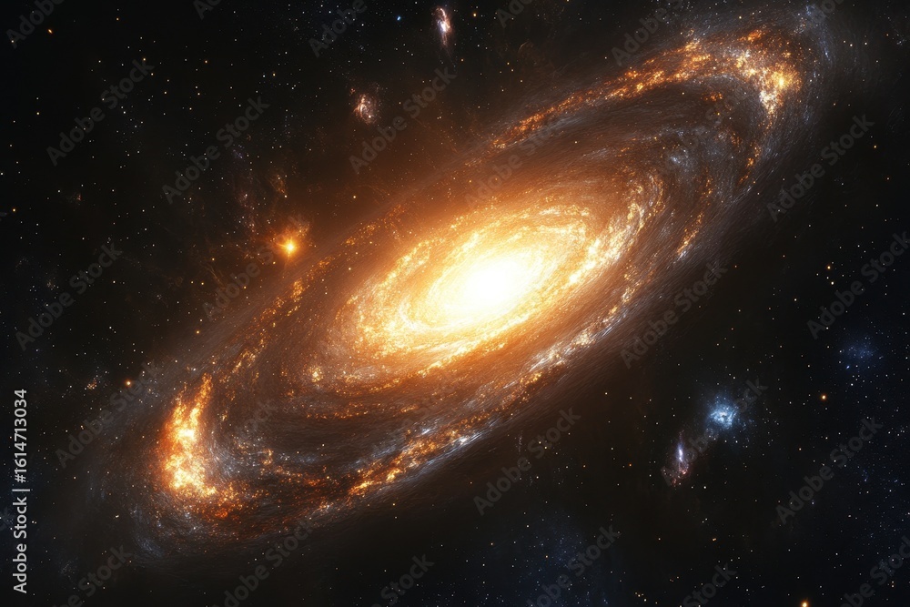 The watermark will not be included on Canvas Print.: Expansive view of a spiral galaxy illuminated by vibrant nebulae in deep space, galaxy and nebula ba
