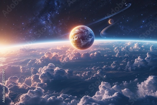 Canvas Print : Exploring cosmic design trends with a rising planet in a bright astral sky