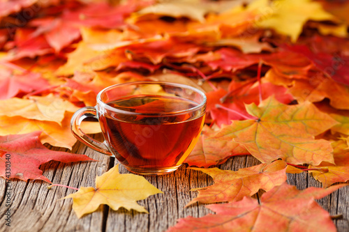 Canvas Prints fall background with maple leaves on wood table - Canvas Prints Canvas Prints fall background with maple leaves on wood table - Canvas Prints