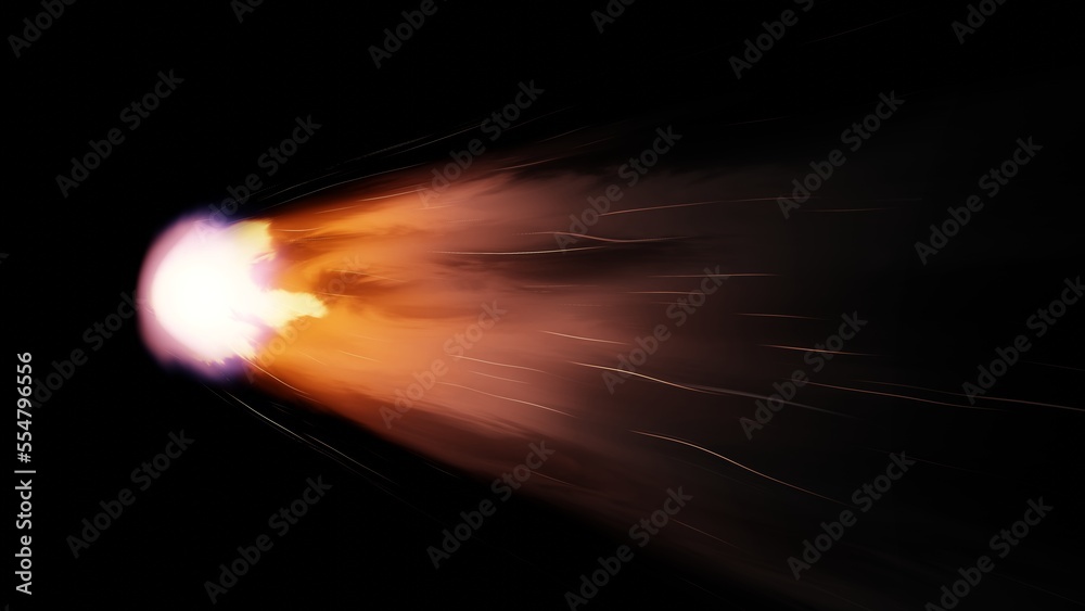 Canvas Prints fall comet from space, fiery tail falling meteorite. entry of an asteroid comet into the earth atmos