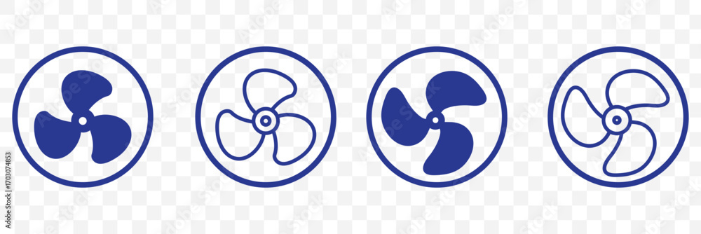 Canvas Print : Fan propeller icon, vector set - silhouette of computer cooling device - electrical temperature equipm