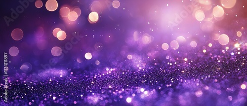 The watermark will not be included on Canvas Print.: Festive purple bokeh glitter texture with christmas abstract design elements and blank space, ideal