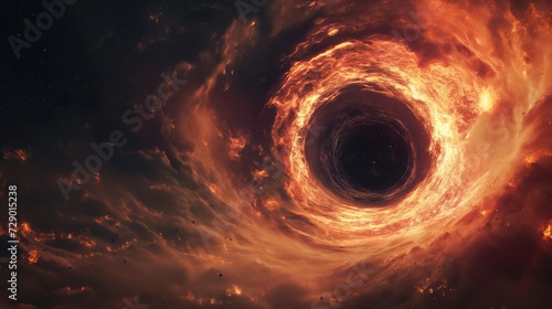 The watermark will not be included on Canvas Print.: Fiery black hole in space - generative ai