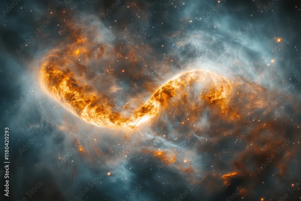 The watermark will not be included on Canvas Print.: Fiery cosmic swirl in deep space - nebula's vibrant colors and intricate details -