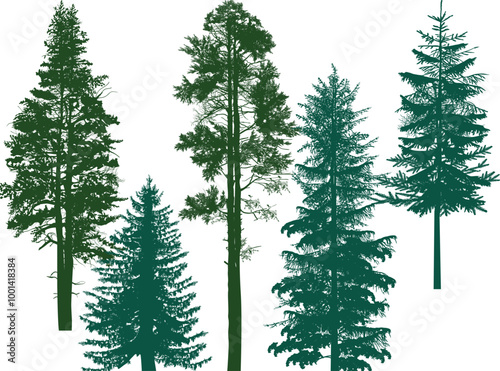Canvas Prints five evergreen trees set isolated on white - Canvas Prints Canvas Prints five evergreen trees set isolated on white - Canvas Prints