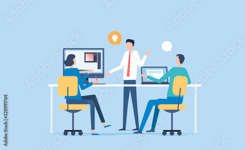 Canvas Print : Flat illustration group business team meeting and brainstorming for working concept