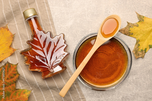 Canvas Prints flat lay composition with tasty maple syrup and dry leaves on light grey table - Canvas Prints Canvas Prints flat lay composition with tasty maple syrup and dry leaves on light grey table - Canvas Prints