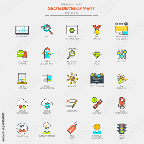 The watermark will not be included on Canvas Print.: Flat line modern color icons