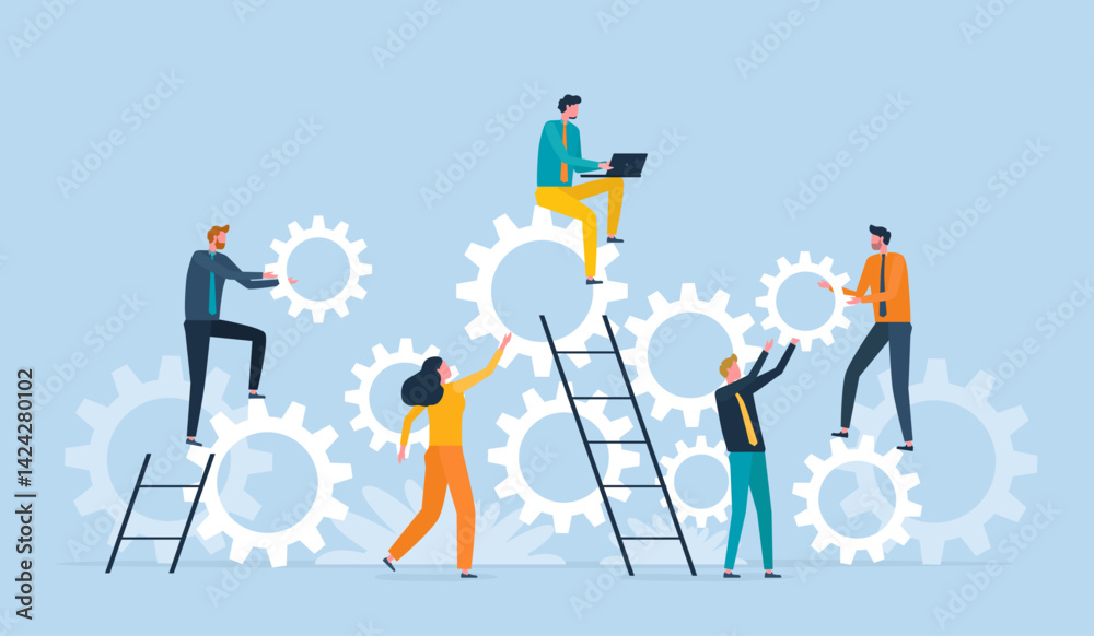 The watermark will not be included on Canvas Print.: Flat vector illustration design business process concept and business team working meeting for proje