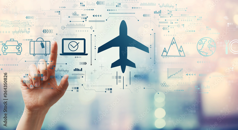 Canvas Prints flight ticket booking concept with hand pressing a button on a technology screen - Canvas Prints Canvas Prints flight ticket booking concept with hand pressing a button on a technology screen - Canvas Prints