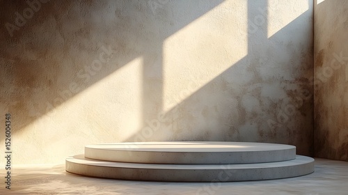 The watermark will not be included on Canvas Print.: Floating white podium with a weightless hovering appearance over a glowing floor