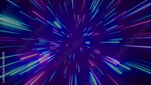 The watermark will not be included on Canvas Print.: Flying in space with luminous neon lines - hyperspace - the modern ultraviolet spectrum of light -