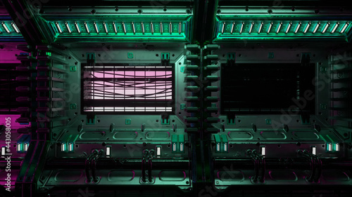 The watermark will not be included on Canvas Print.: Flying into spaceship tunnel, sci-fi spaceship corridor - futuristic technology for technical titles