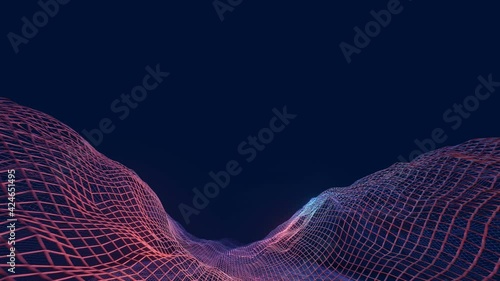 The watermark will not be included on Canvas Print.: Flying through wireframe abstract mountain landscape valley - future technology, big data grid backgr