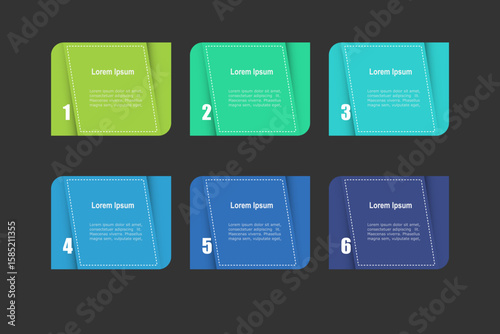 The watermark will not be included on Canvas Print.: For business concept with 6 steps infographics, multicolor rectangle shape, design for workflow layo