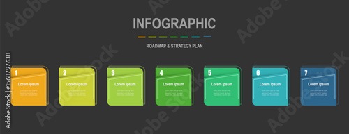 Canvas Print : For business concept with 7 steps infographics, multicolor rectangle shape, design for workflow layo