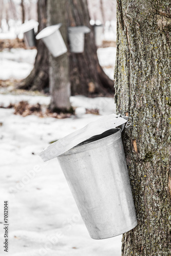 Canvas Prints forest of maple sap buckets on trees - Canvas Prints Canvas Prints forest of maple sap buckets on trees - Canvas Prints