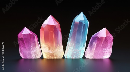 Canvas Print : Four colorful crystals are displayed on a dark background