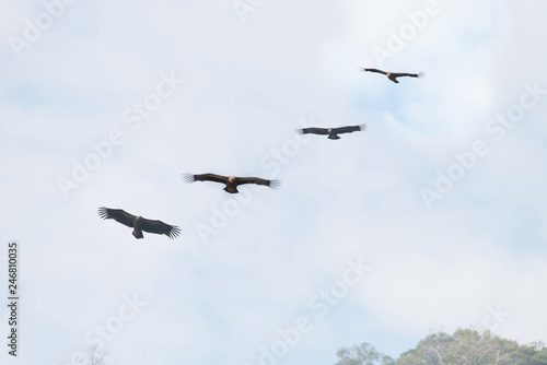 Canvas Prints four huge vulture in flight,low angle view..flock of himalayan griffon soaring with fully wingspan i